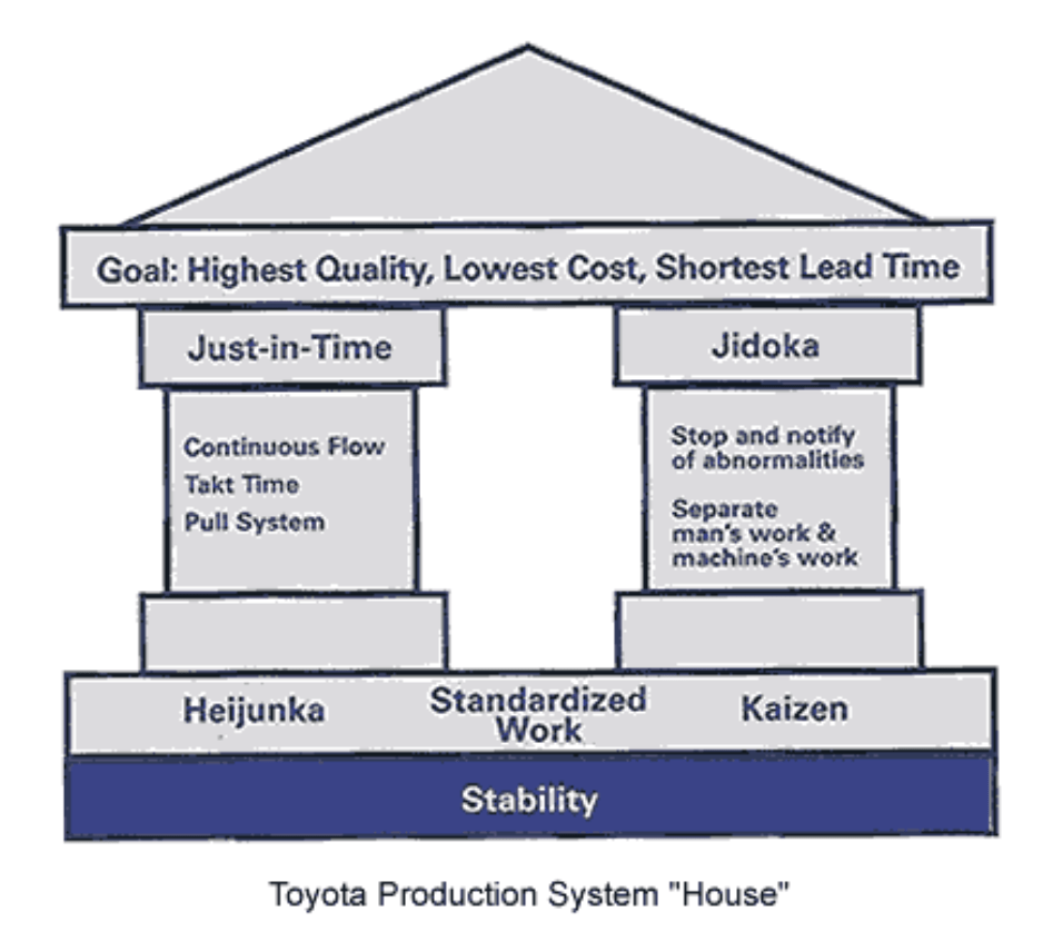 TPS, mô hình Toyota Production System, thường được mô tả như là một “ngôi nhà” hình ảnh mô phỏng như bên dưới.